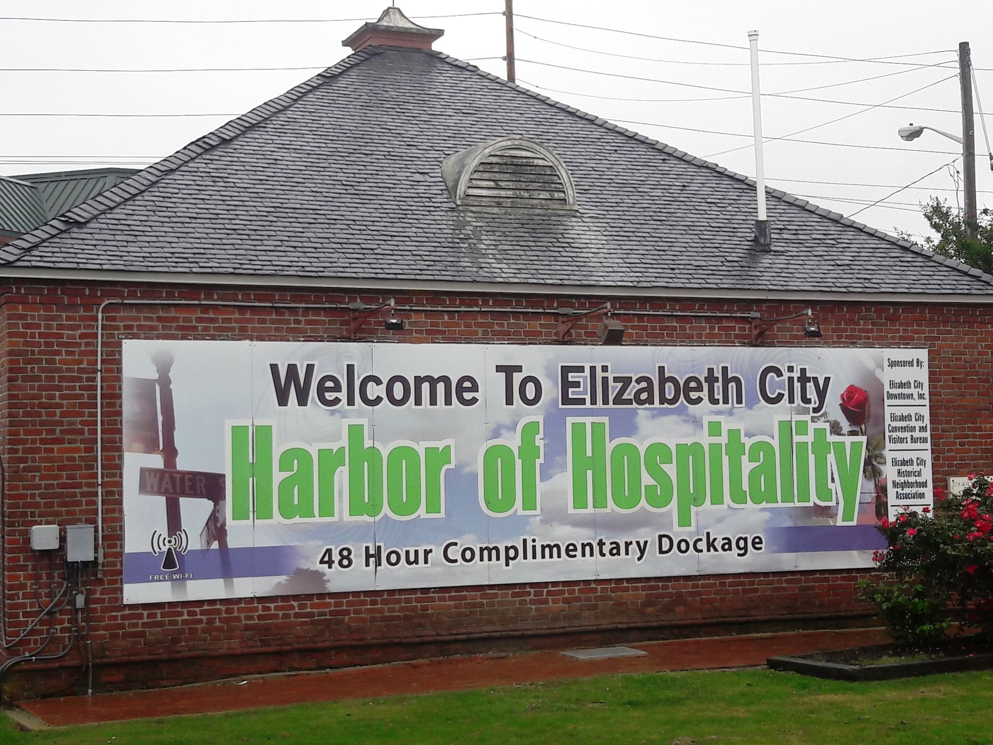 Gegen 04:00 beginnt es zu regnen, hatten wir lange nicht. In einer Regenpause gehe ich gegen 08:00 zum Visiter Center im Museum of Albermarle, das sonntags leider geschlossen ist, ebenso wie das Flour Girls Café and Bakery. Wir warten an Bord den wieder einsetzenden Regen ab, um 11:00 soll er enden.